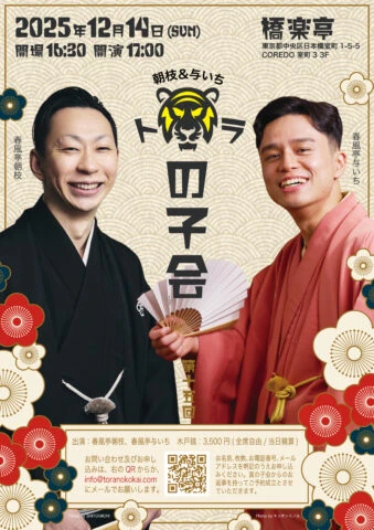 【出演】春風亭㐂いち、春風亭朝枝 【木戸銭】ご予約:2,700円 当日:3,000円 【お問い合せ】℡03-5843-6339 オフィスマツバ rakugoyoyaku@yahoo.co.jp Webサイト