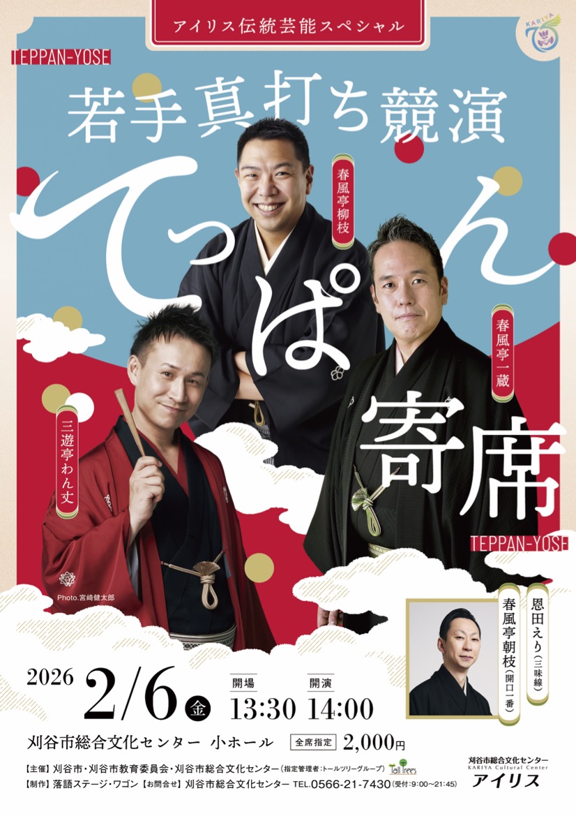 アイリス伝統芸能スペシャル ~若手真打ち競演 てっぱん寄席~ 春風亭柳枝/春風亭一蔵/三遊亭わん丈
